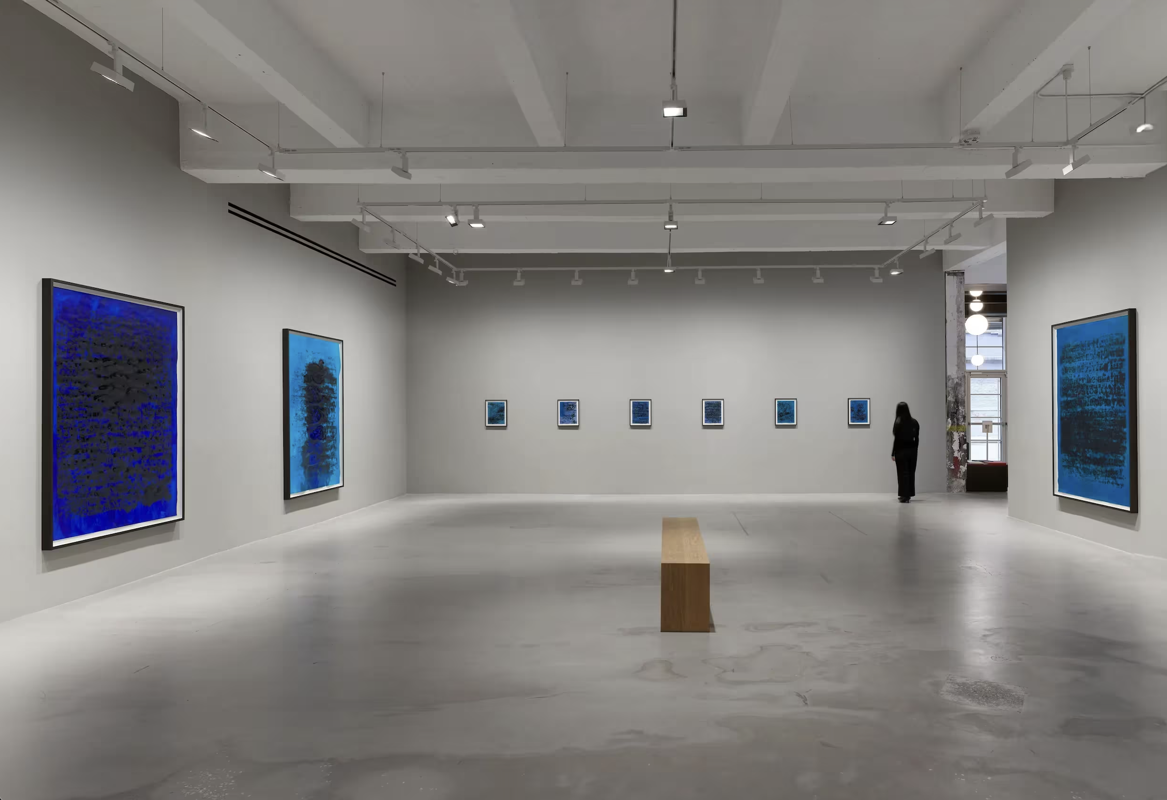 A two-part exhibition of new and historic works on paper, this show extends Ligon's decades-long engagement with language and abstraction through a suite of richly layered compositions meditating on the color blue. In dialogue with James Baldwin — specifically his 1964 introduction to a Beauford Delaney exhibition in Paris, where Baldwin described a light "as blue as the blues when the last light of sun departed" — Ligon's new Blue (for JB) series begins with rubbings made on Japanese Kozo paper placed atop studies for his Stranger paintings, then enlarged as silkscreens onto blue grounds with water applied to let the ink blur and drift. The second gallery presents three decades of printmaking, from Untitled (Four Etchings) (1992), drawing on Zora Neale Hurston and Ralph Ellison, to Untitled (Condition Report for Black Rage) (2015). A summation of a practice and a profound meditation on race, language, and the power of atmosphere to carry meaning.